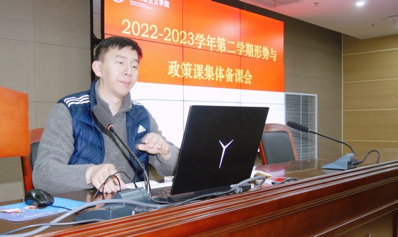 余文华首先传达了教育部《高校“形势与政策”课教学要点(2023年上辑)》相关要求,根据要点内容及前期教学安排,明确了本学期四个教学专题为“走好中国式现代化之路——深入学习贯彻党的二十大精神”“聚天下英才  筑强国之基——学习习近平总书记关于教育重要论述(五)”“在新时代新征程上推进祖国统一”及“脆弱复苏的世界经济”。随后,他就四个教学专题的重难点及教学材料等问题进行了说明。同时,就本学期授课形式、各年级课程任务安排、课程考核方式及评价方式进行了统一要求;并对下一周课程开课相关工作进行了安排。最后,他强调要提高政治站位,加强课堂纪律要求,增强师生之间的交流互动,切实提升课堂教学的实效性。