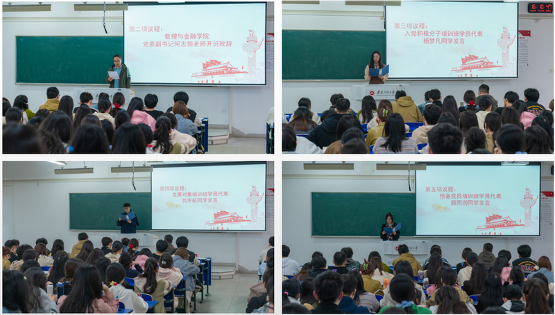 2023级统计学专业杨梦凡、2022级统计学专业仇宇航、2021级互联网金融专业顾雨润作为学员代表先后发言。她们代表全体学员向党组织表示由衷地感谢,并号召同学们端正学习态度,加强作风建设,注重理论联系实际,以积极饱满的姿态参加培训,圆满完成培训任务。