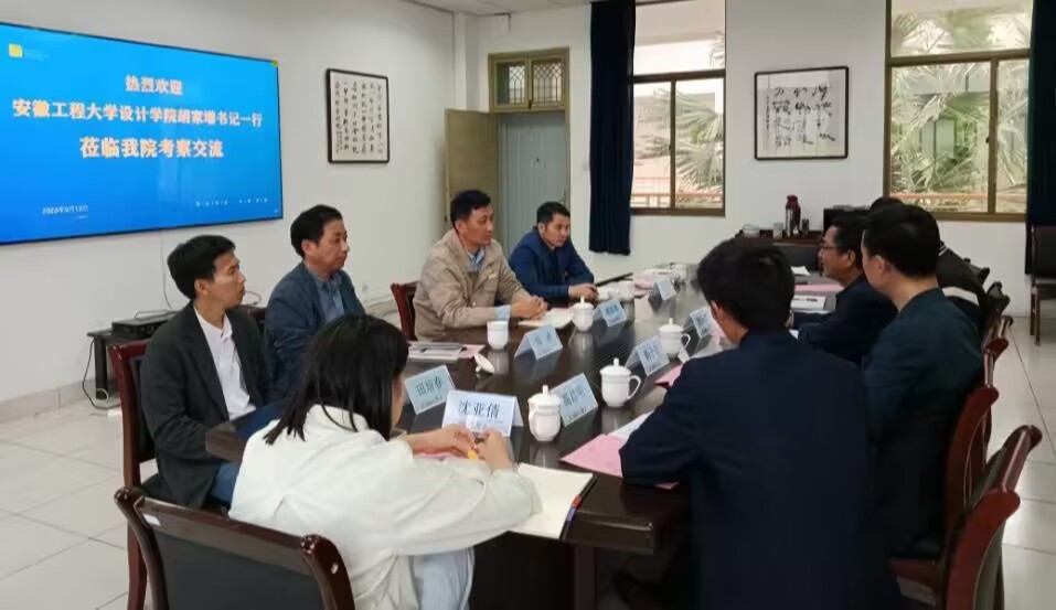 在湖州师范学院艺术学院,胡家增一行参观了该院毕业设计展和相关实验室,听取了院长鲁海峰关于学科与专业建设、湖州地域文化与设计融合、本硕联动定点驻村设计服务等方面的介绍,双方围绕党建引领学科发展、设计赋能功能、专业特色聚焦、地域文化传承等内容作了深入交流。